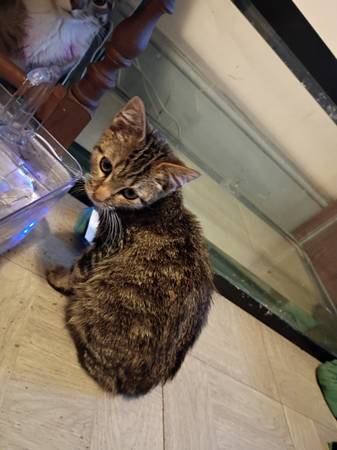 There is one adorable 13 week old baby boy kitten available left for adoption. $45 rehoming fee