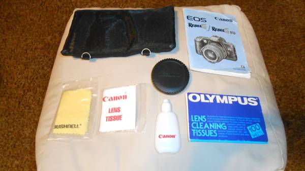 CANON EOS REBEL G 35mm CAMERA AUTOFOCUS + ZOOM LENS EF 35-80mm This Canon 35mm EOS Rebel G Camera is in excellent condition. Requires two(2) DL/CR123 3V Batteries Not Included. Included with the...