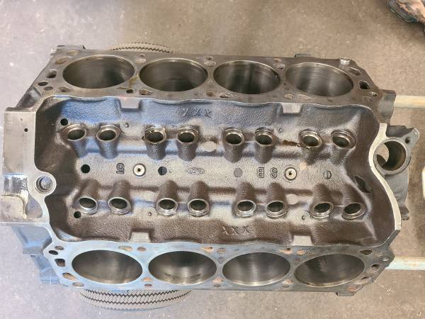 Ford 302 block. Std bore. Crankshaft might have to be cut. Good block for a stroker engine.
