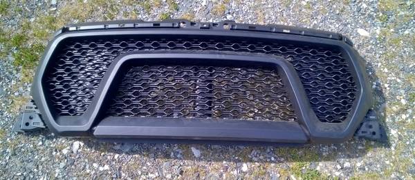 Aftermarket matte black grill Rebel style Look at the one pic...it has a crack, won't notice when installed and its almost half $ of new! Its for the new style ram trucks