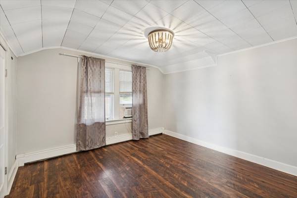Hardwood floors and natural light bring warmth throughout, while modern conveniences like an in-unit washer and dryer make life simpler. Baseboard heating keeps the home cozy in cooler months, with window A/C units providing seasonal comfort. The unfinished basement adds generous storage, a practical bonus that goes a long way.