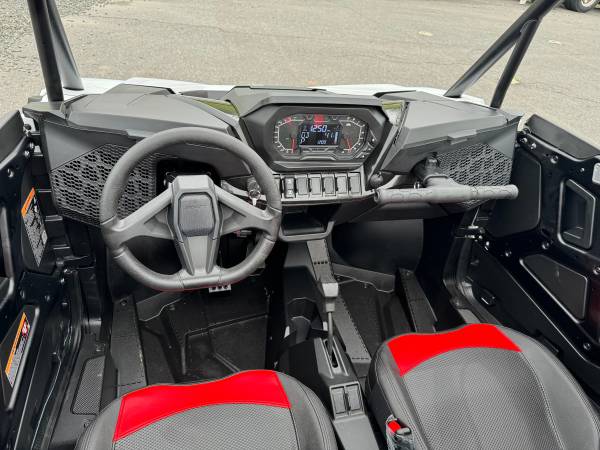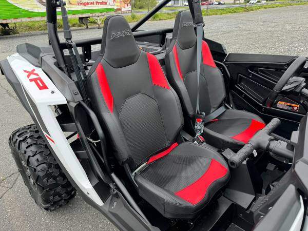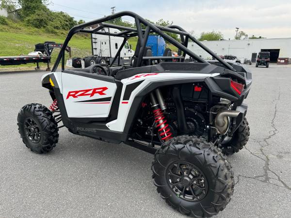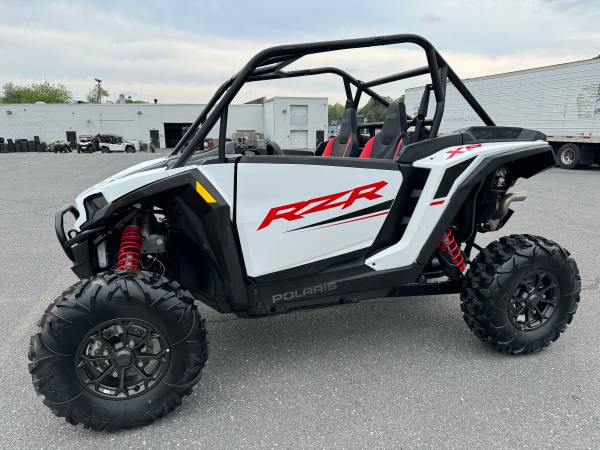 THIS IS THE BRAND NEW DESIGN RZR XP WITH A 64" WIDE STANCE, IT HAS 114HP AND 13.5" OF GROUND CLEARANCE. THIS ONE COMES WITH OEM POLARIS MAG WHEELS WITH 29" TIRES, ITS HAS EPS- POWER STEERING, IN WHITE W/ FACTORY GRAPHICS PACKAGE, FULL DOORS, FULL WALKER EVANS SHOCKS AND MUCH MORE......