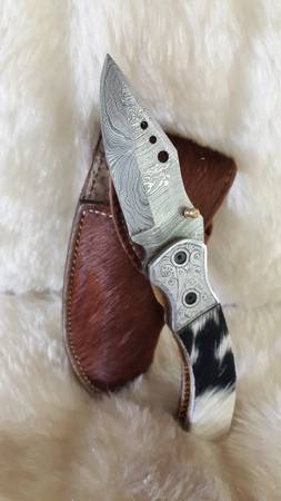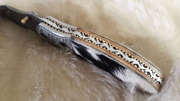 NEW G.O.A.T. + DAMASCUS HAIR ON HIDE POCKET KNIFE - $125 (HUNTSVILLE, AL)