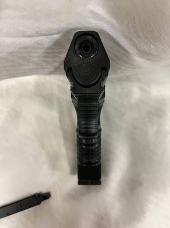 IT IS BUILT OF METAL AND VERY NICLEY MADE. IT HAS A FEW SLIGHT SCUFF MARKS WHERE THE BB CLIP GOES IN. WORKS PERFECTLY! PLEASE FEEL FREE TO MAKE A REASONABLE OFFER.