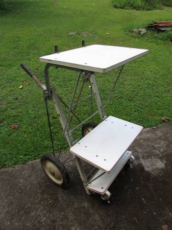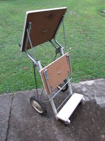 A Unique Display Sidewalk Cart with Shelving and 4 wheels and handles , Many practical uses , portable easily rolls about