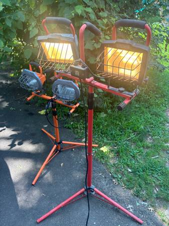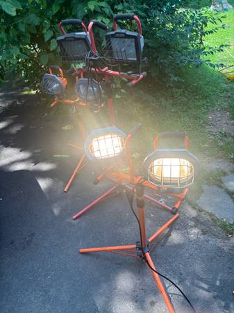 For sale 3 pedestal work lights. 2 HDX 1 Craftsman. All lights are 1000W and work. $30 each or $80 for all. Cash and carry no shipping.